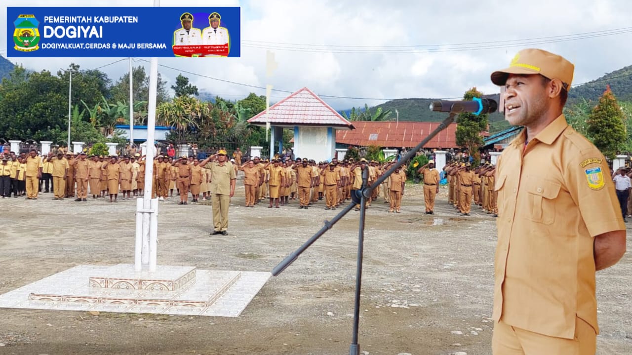 Willem Tagi dalam apel mengingatkan terkait Katimnas Dogiyai sedikit tidak memungkinkan tapi Kita ASN Dogiyai hadir di apel berarti kita selalu patuhi pada Aturan yang ada.