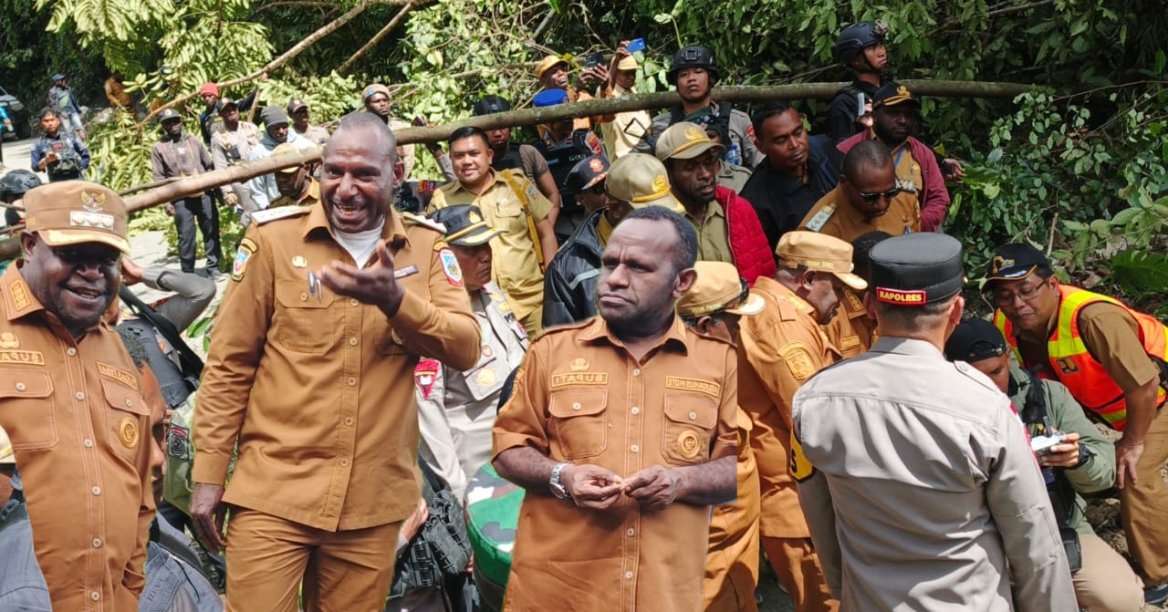 Bupati Asosiasi Meepago mengecek langsung tempat longsoran di jalan Trans Meepago