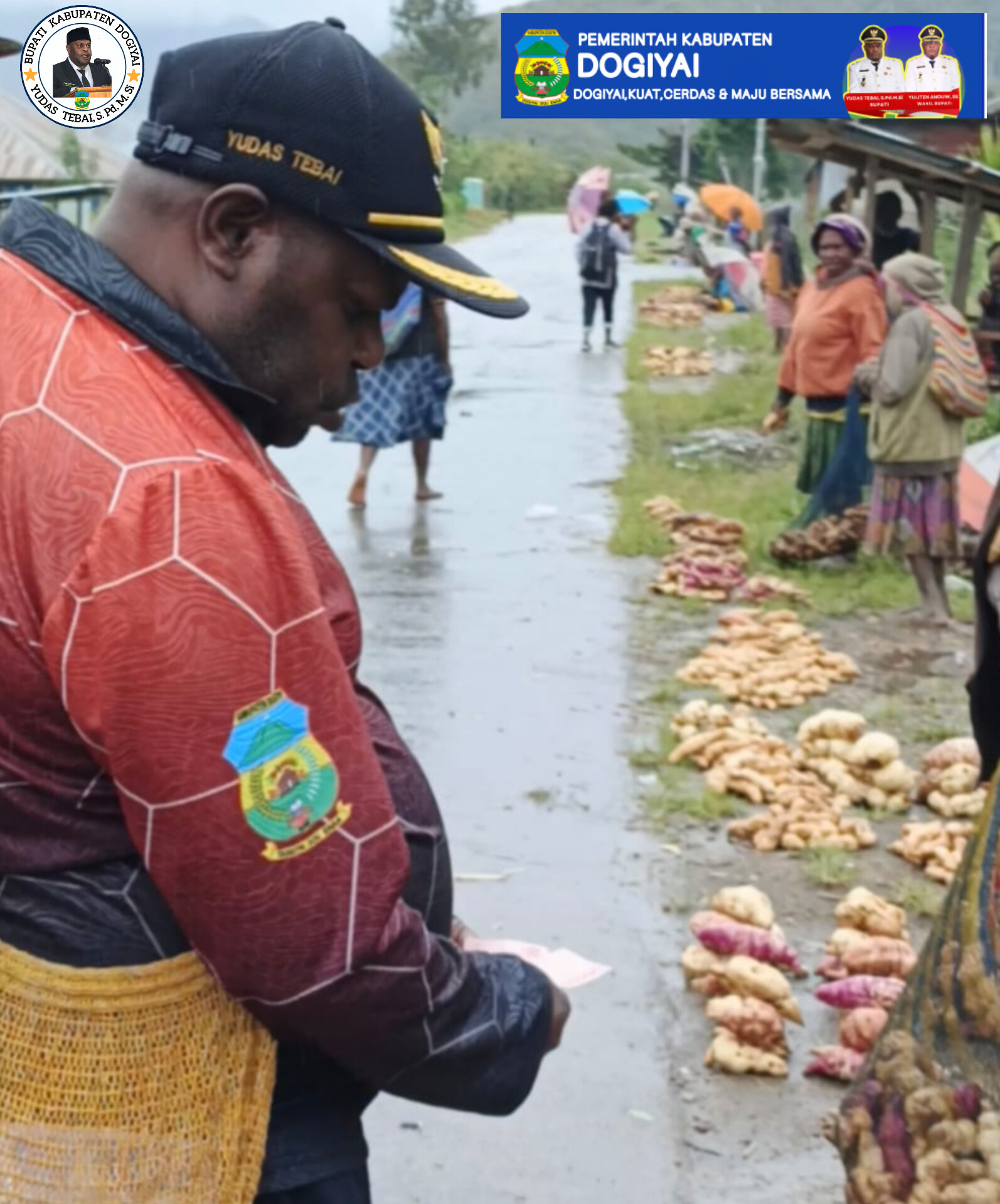 “Kami telah menetapkan kebijakan bahwa Setiap hari Jumat, saya dan Wakil Bupati tidak akan menerima tamu di kantor. Sebagai gantinya, kami akan turun langsung ke pasar untuk memborong jualan mama-mama,” ujar Bupati Yudas Tebai saat diwawancarai di kediamannya di Tokapo, Dogiyai.