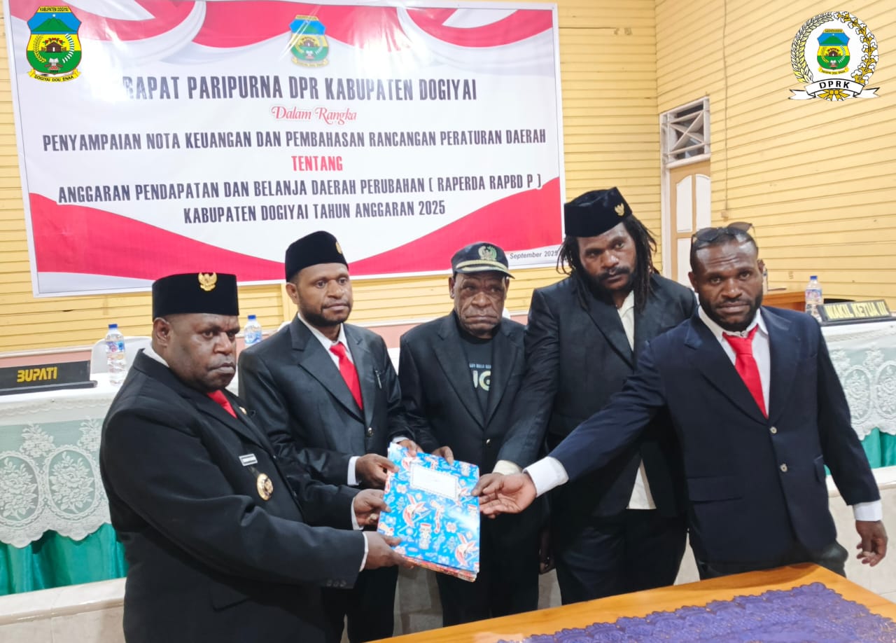 Sidang paripurna ini mengusung agenda utamanya adalah dalam rangka penyampaian nota keuangan dan pembahasan rancangan peraturan daerah tentang anggaran pendapatan dan belanja daerah kabupaten dogiyai ( Raperda RAPBD P ) Kabupaten Dogiyai Tahun Anggaran 2025.