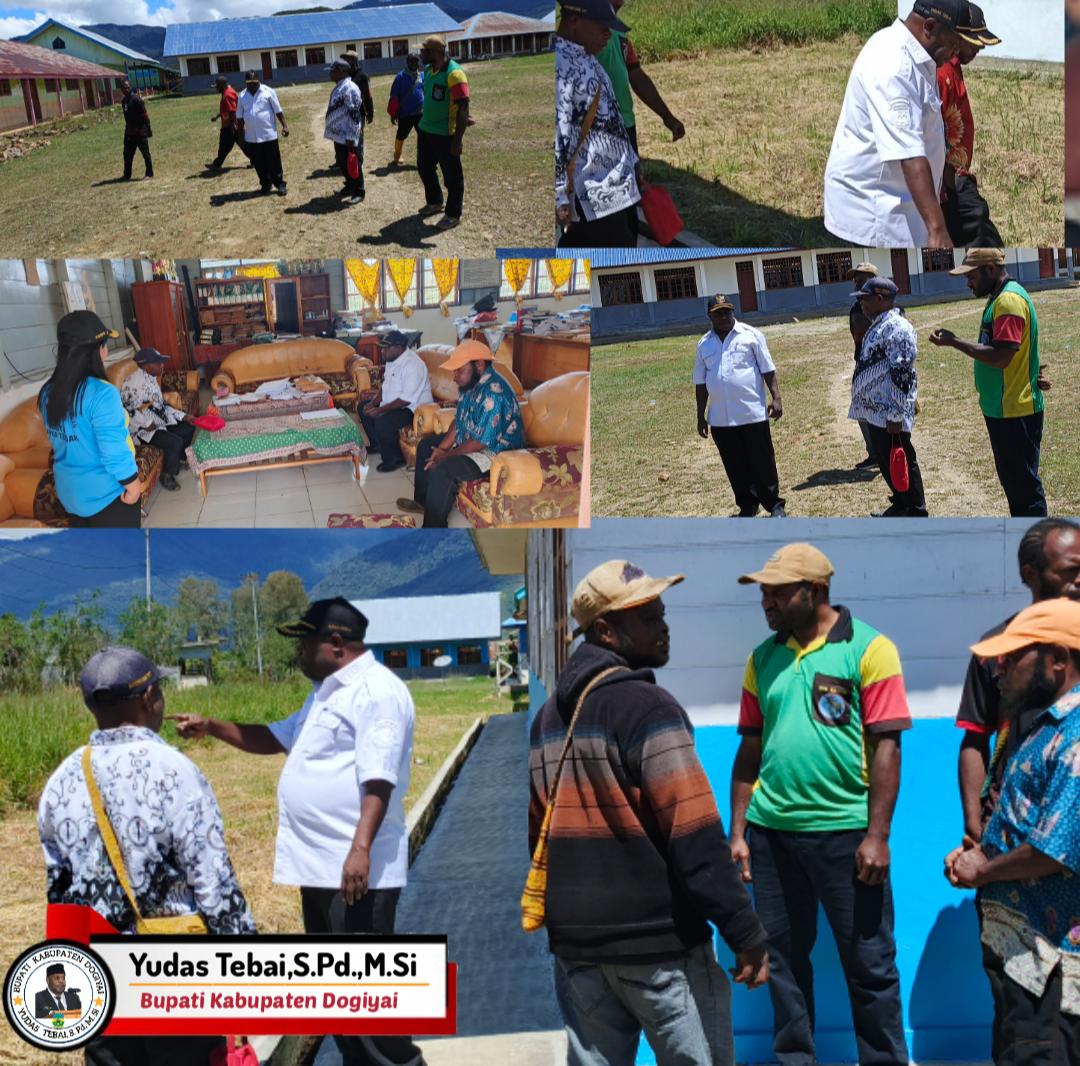 DOGIYAI – PEMDA DOGIYAI,Id. Bupati Kabupaten Dogiyai, Yudas Tebai,S.Pd.,M.Si melakukan kunjungan kerja ke SMK Negeri 1 Dogiyai untuk meninjau langsung kondisi sekolah dan memantau lokasi pembangunan Gedung Unit Produksi Ternak. Kunjungan ini merupakan bagian dari komitmen pemerintah daerah dalam meningkatkan kualitas pendidikan vokasi di Kabupaten Dogiyai.