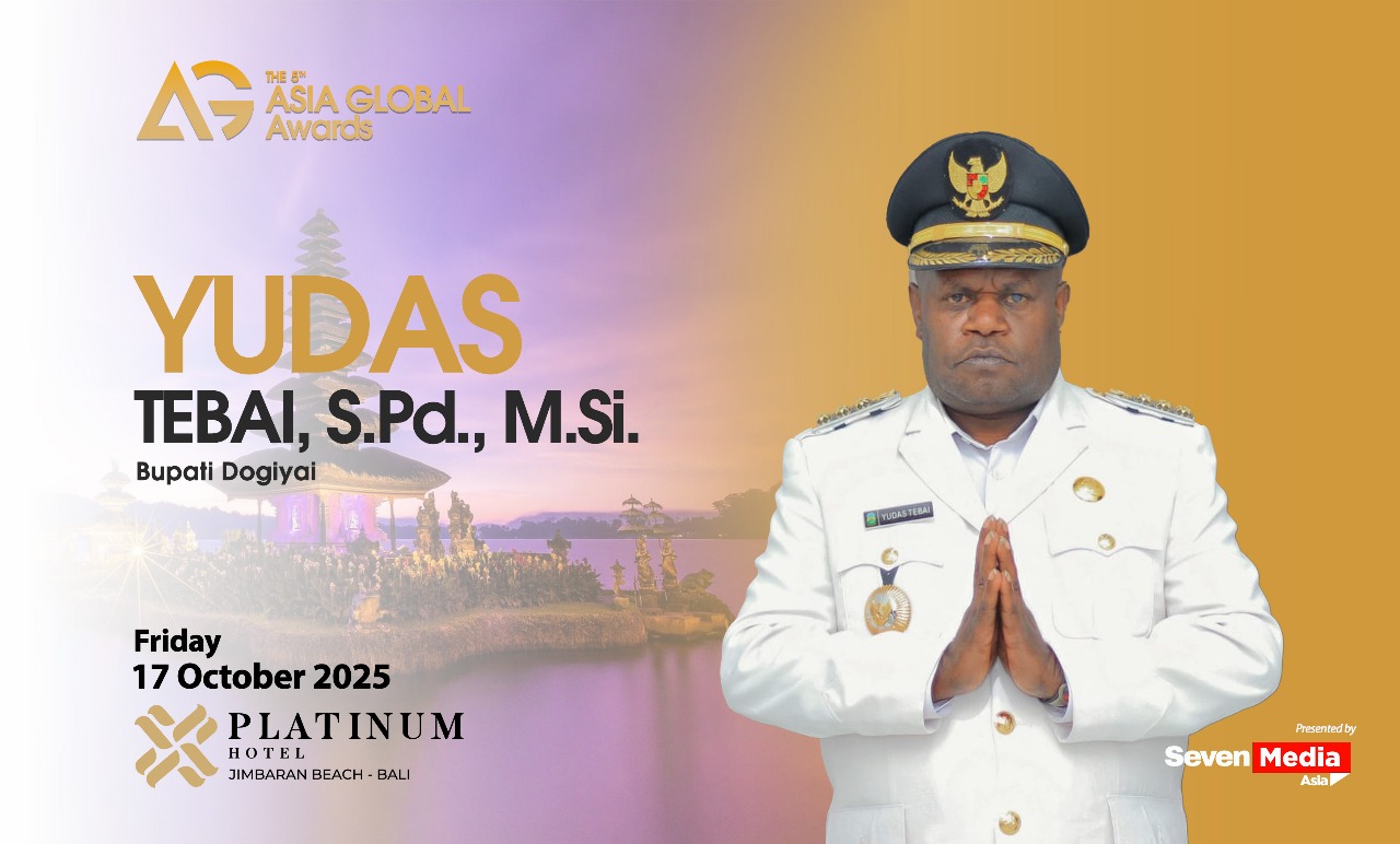 BALI – PEMDA DOGIYAI,Id. Bupati Kabupaten Dogiyai Yudas Tebai,S.Pd.,M.Si,akan kembali menerima Piagam Penghargaan Bupati terbaik dari Papua di Dogiyai yang kedua kali dari Asia Global AWARDS 2025 di Bali.