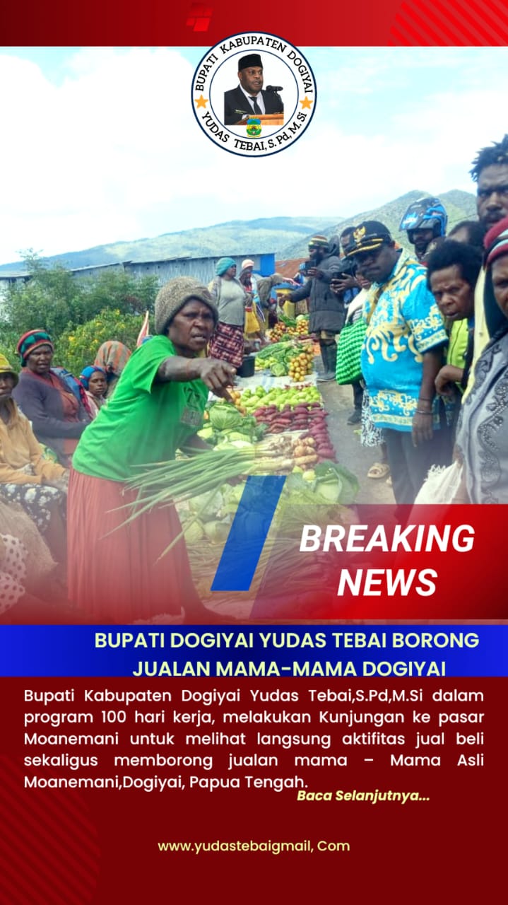 Saya dan Bapak Wakil Bupati sudah tetapkan setiap hari Jumat kami tidak akan terima tamu di kantor karena akan selalu berkunjung ke pasar mama-mama sekaligus memborong jualan mereka di pasar,” beber Bupati Dogiyai, Yudas Tebai saat Wawancara dari Kediaman Bupati Tokapo, pada Jumat, (28/3/2025).