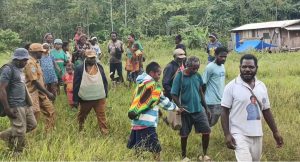 Foto: bersama Bupati Dogiyai dan masyarakat usai mengunjungi dan langsung melihat Kerusakan puskesmas Unito,distrik Sukikai Selatan.