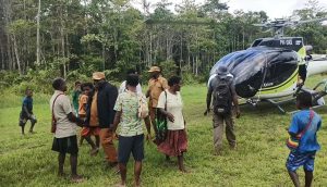 Foto: Masyarakat Distrik Sukikai selatan menjemput Bupati Dogiyai ketika turun dari Helikopter di Bandara kampung Enato,dengan keadaan yang gembira dan hati yang terbuka.