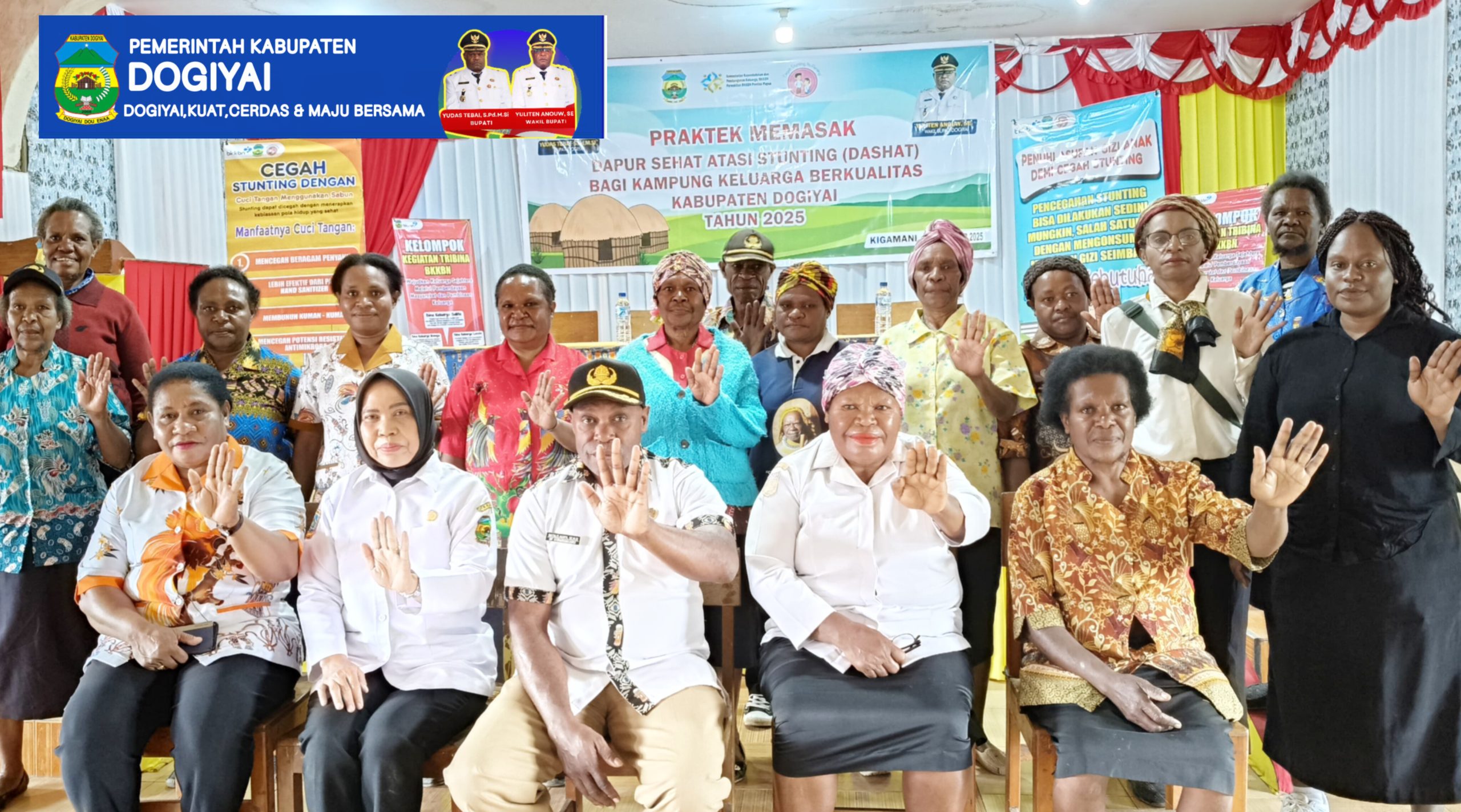 DOGIYAI – PEMDA DOGIYAI,Id.Rabu,08 Oktober 2025 bertempat di Aula Koteka Moge, Moanemani telah lakukan kegiatan Praktek Masak Dapur Sehat atasi Stunting ( Dashat ) bagi Kampung keluarga berkualitas kabupaten Dogiyai Tahun 2025.