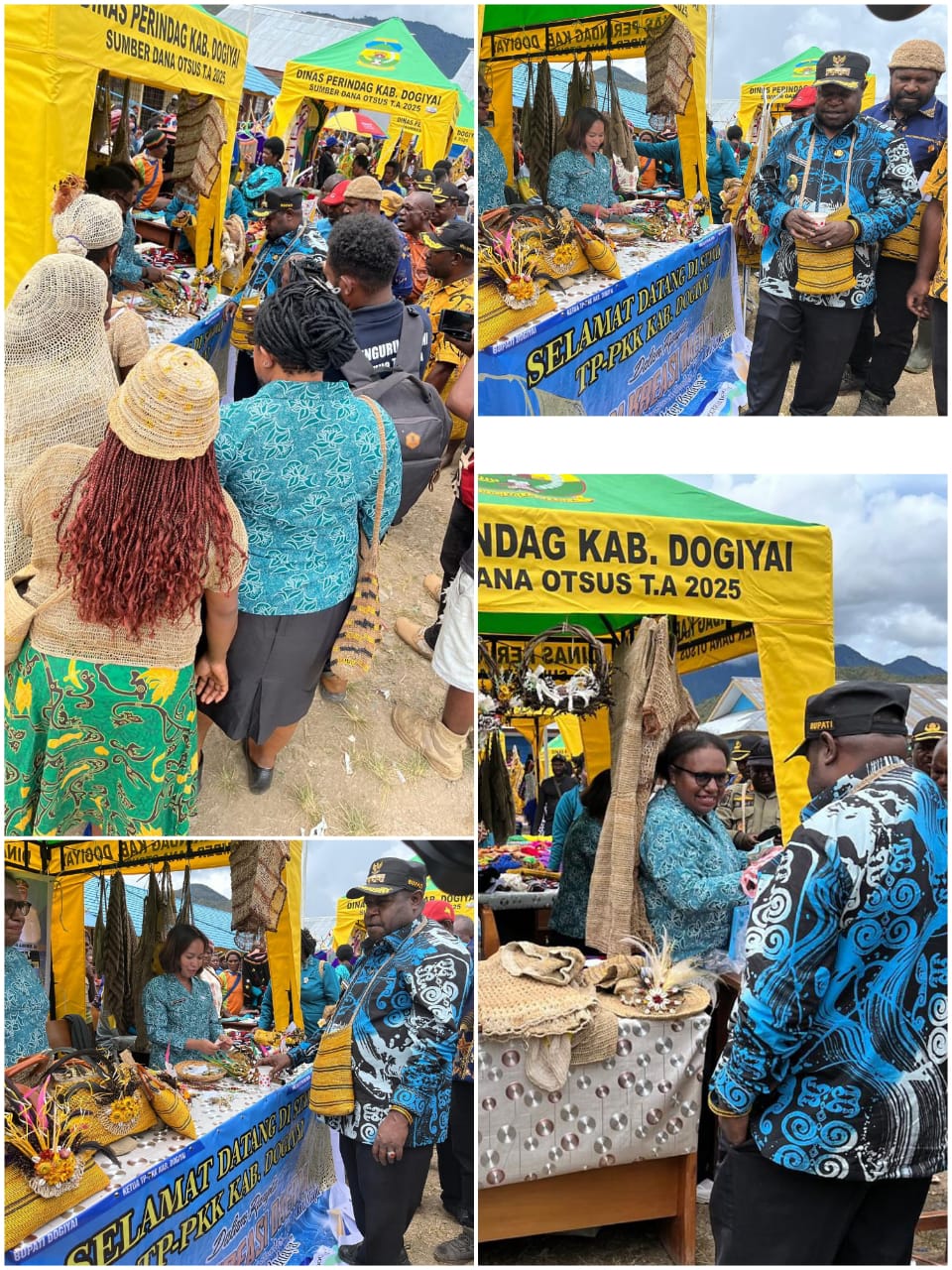 DOGIYAI – PEMDA DOGIYAI,Id. Stand TP PKK Kabupaten Dogiyai mendapat kunjungan langsung dari Bapak Bupati Dogiyai dalam kegiatan Pekan Kreasi Daerah yang diselenggarakan oleh Dinas Kebudayaan dan Pariwisata Kabupaten Dogiyai dalam rangka Hari Ulang Tahun (HUT) Noken, 4 Desember 2025.